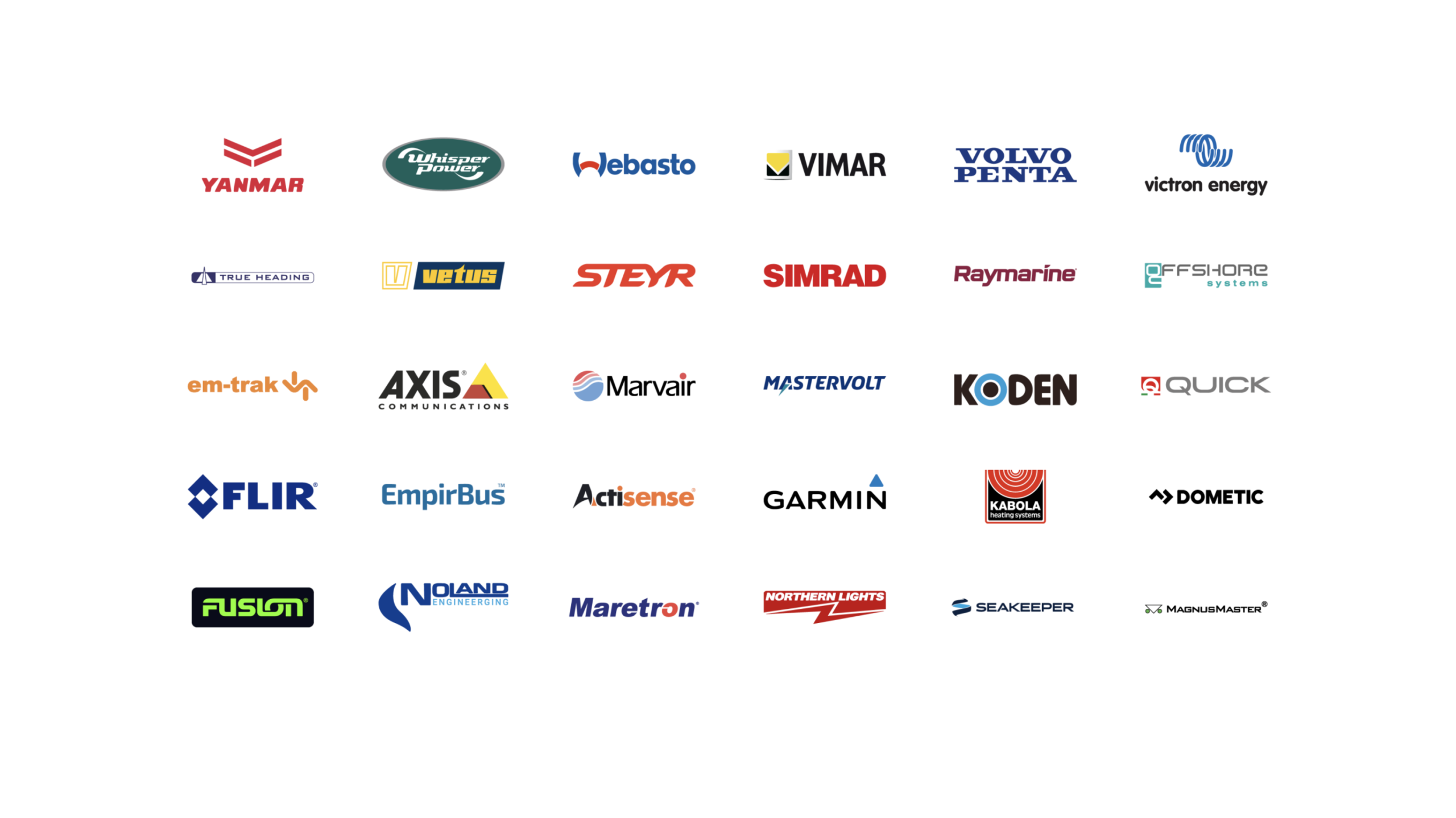 YachtControl werkt samen met internationaal gerenommeerde merken op het gebied van energie, navigatie, aandrijving, comfort, audio en stabilisatie. Door deze partners te combineren ontstaat voor elk jacht een integraal en betrouwbaar systeem dat perfect aansluit op de wensen van eigenaar en werf.